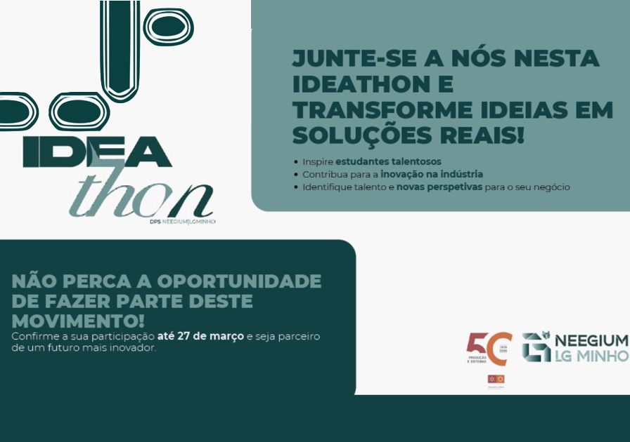 We are pleased to invite partner companies of the Production and Systems Department to participate in IDEATHON 2026, which will take place on 30 April at the University of Minho – Azurém Campus, in Guimarães.